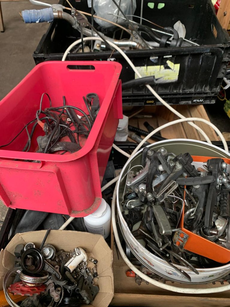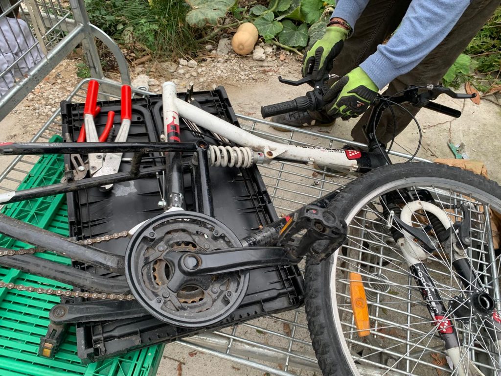 Démantèlement de vélos pour préparer l’atelier du Refuge