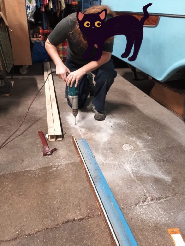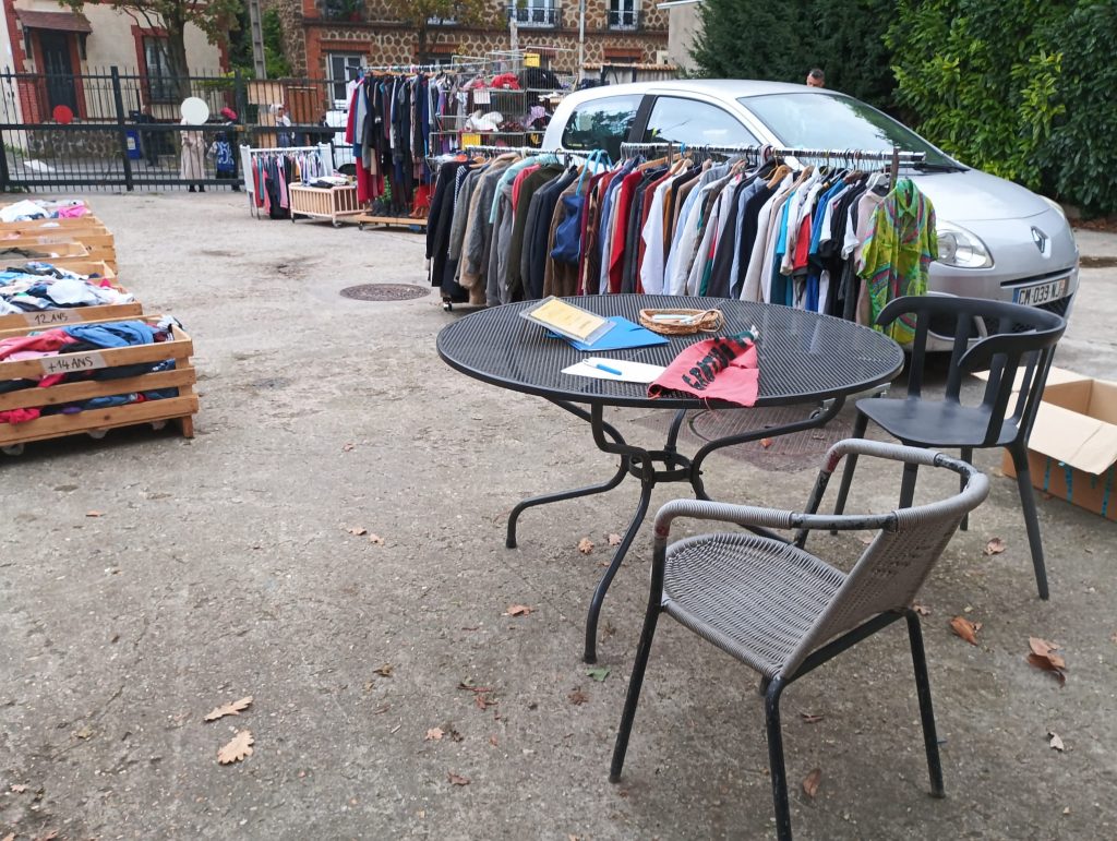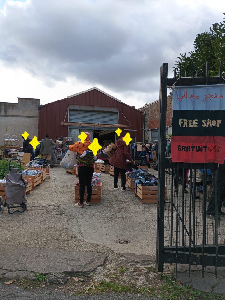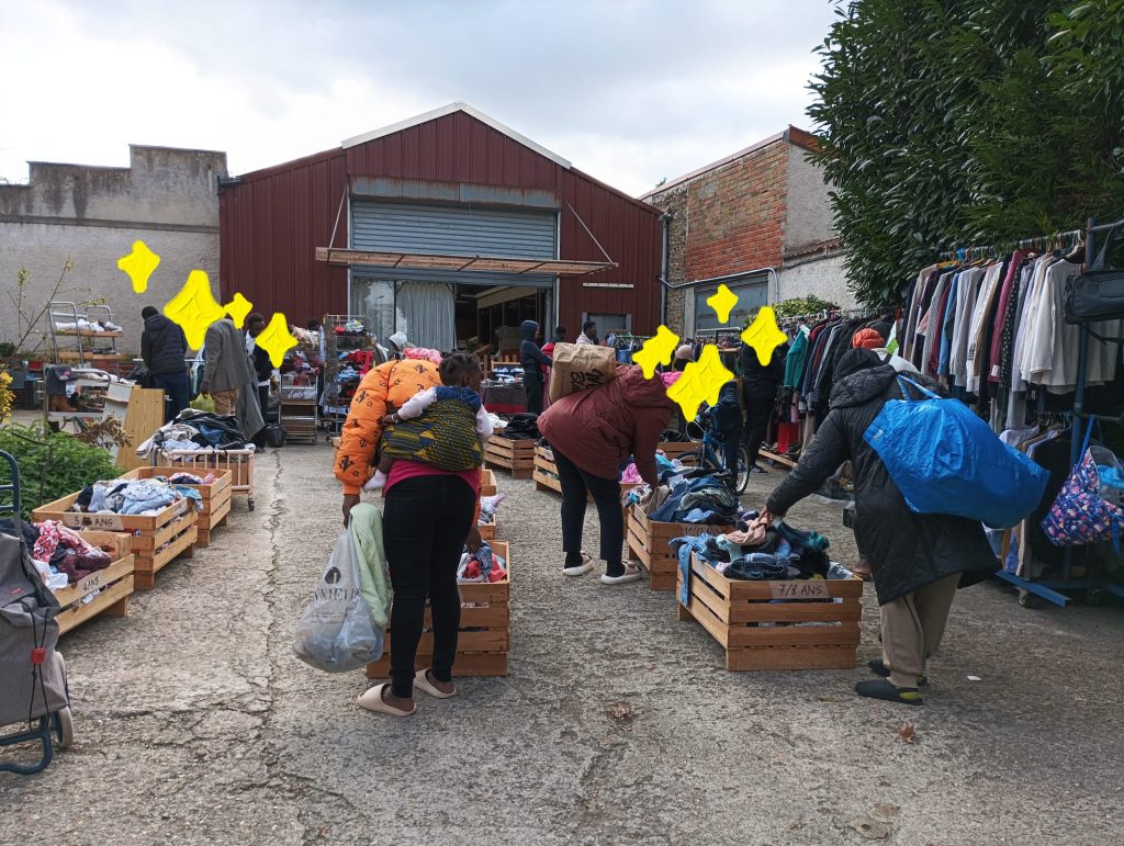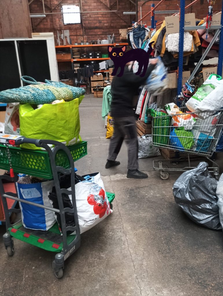 - Travaux : fixation de rails au sol pour les portants de la gratuiterie + Installation d’un espace de tri/démantèlement