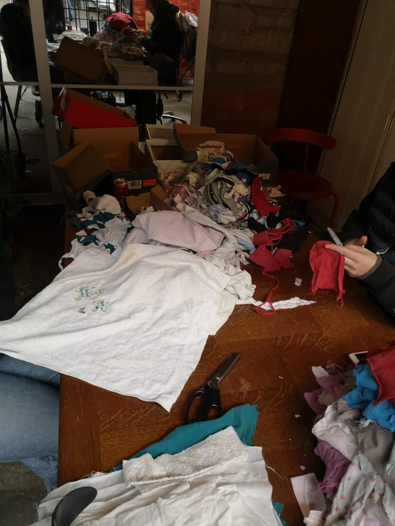 Rangement des textiles donnés par les Hotels solidaires et préparations de lots pour les assos partenaires :