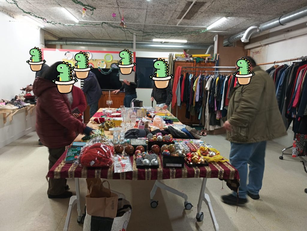 Les personnes accueillies dans ce cadre peuvent bénéficier de vêtements, vaisselle, linge de maison, petit électroménager, produits d’hygiène, articles de puériculture et denrées alimentaires en fonction des besoins exprimés en amont et des ressources à notre disposition.